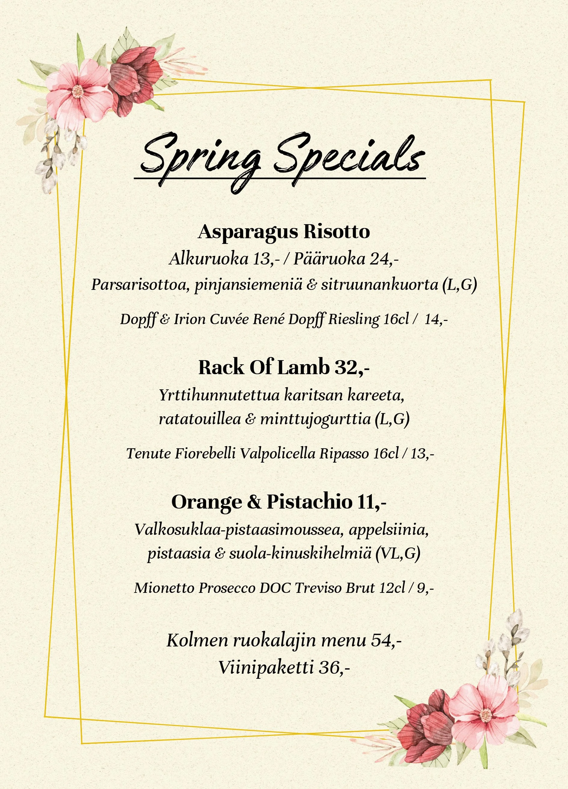 Tervetuloa nauttimaan keittiömestarimme loihtiman kevätmenun antimista!